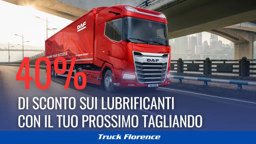 Truck Florence, in collaborazione con DAF, è lieta di offrire una promozione esclusiva dedicata ai proprietari di veicoli DAF. Per tutti i clienti che effettuano un tagliando presso la nostra officina, offriamo uno sconto del 40% sui lubrificanti essenziali per il corretto funzionamento del motore e degli altri componenti chiave del veicolo. Se possiedi un […]