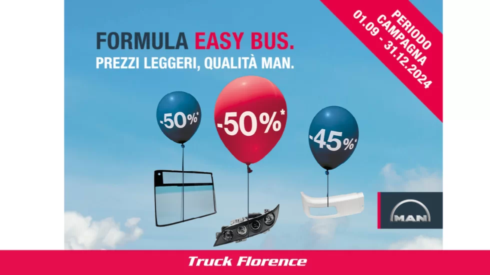 Se possiedi un autobus MAN o Neoplan, questa è l’occasione che aspettavi! Truck Florence è orgogliosa di presentarti la Formula Easy Bus, un’iniziativa pensata per offrire ai proprietari di autobus MAN un’opportunità unica: ricambi originali di alta qualità a prezzi leggeri. Non è mai stato così conveniente mantenere il tuo veicolo in perfette condizioni grazie […]
